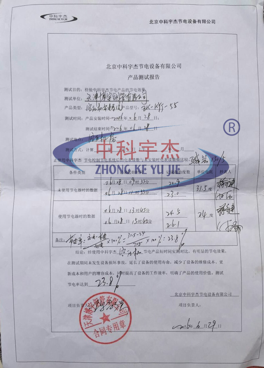 根據空壓機和水泵的應用情況進行技術難點攻克,這次的節能改造得到了很好的節能效果。設備安裝后,經過嚴格測試,對比安裝前的能耗來看,安裝后的空壓機能耗降低了23.8%,水泵能耗降低了27.2%。按保質十五年計算,此次節能改造能為天津博宇鋼管有限公司帶來二百二十萬人民幣以上直接經濟效益。