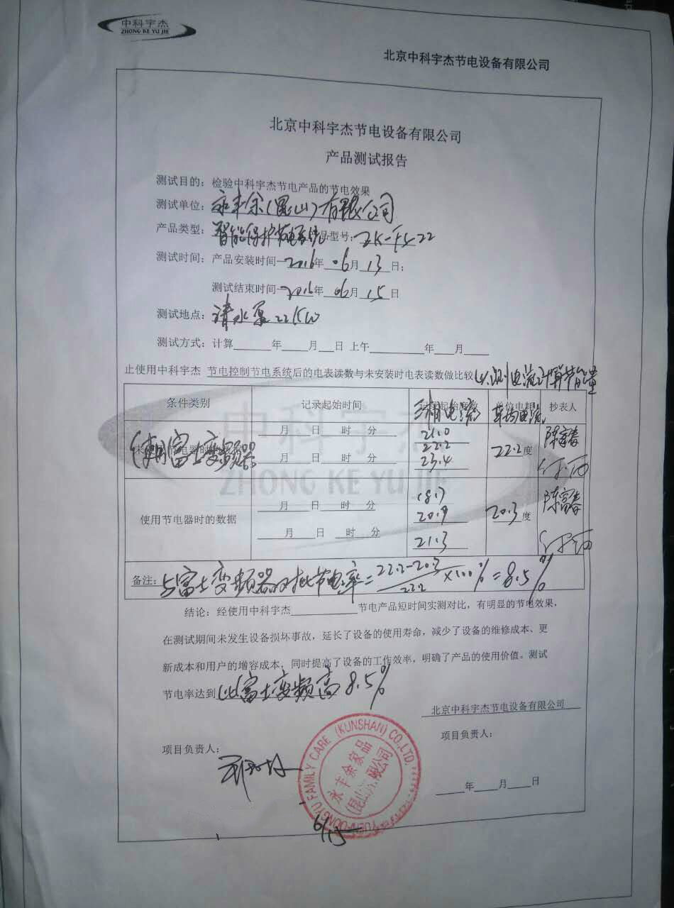 經(jīng)安裝調(diào)試驗(yàn)收后,與變頻器對(duì)比節(jié)電率,發(fā)現(xiàn),中科宇杰的智能保護(hù)節(jié)電系統(tǒng)節(jié)電效果明顯,比變頻器節(jié)能效率高8.5%,不但降低了用能企業(yè)的能耗,該項(xiàng)目還延長了水泵的使用壽命,降低了運(yùn)行成本。中科宇杰智能節(jié)電系統(tǒng)與傳統(tǒng)變頻器相比,更具節(jié)能優(yōu)勢(shì),不但具有抗電磁干擾能力,還能提高功率因素。節(jié)電降耗也高于傳統(tǒng)變頻器,到達(dá)很好的節(jié)能效果。
